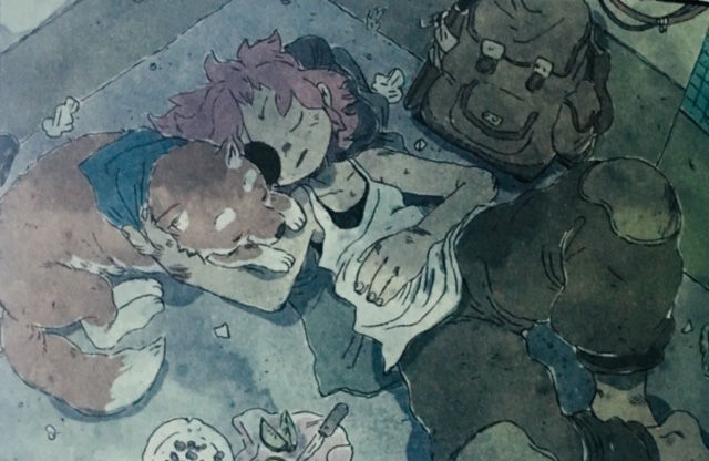 Needless to say this story covers a lot of problematic topics, but the most important part is the growth of Jun we get to experience. She is in a bad place, under the influence of drugs, all alone and believing she does not need anyone’s help. Believing nobody wants to help her and just feels pity for this horrible veteran. Believing she is only useful in war. Along the way she meets characters and goes through situations that make her feel more ready to take on the world after war. Spoiler: there’s a dog by her side and he’s a very good boy.